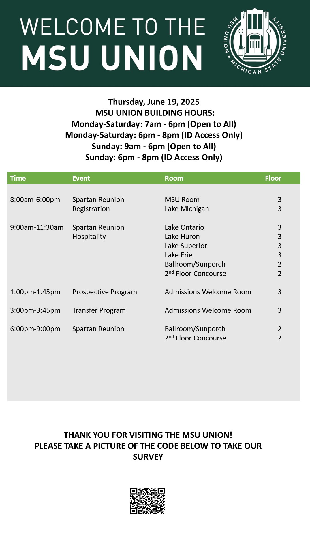 By spitzka, Mon, 06/16/2025 - 13:26 Creator: spitzka Area: MSU Union (Temp Schedule) Type: Academic Title: 6/19/2025 Subheader: Body Copy: Active Dates: Thu, 06/19/2025 - 05:00 - Thu, 06/19/2025 - 23:59 Preview